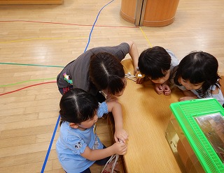 生き物に触れたり見たりすることで、生き物を「かわいいな」と思う瞬間を子どもたちと一緒に大切にしていきたいと思います。