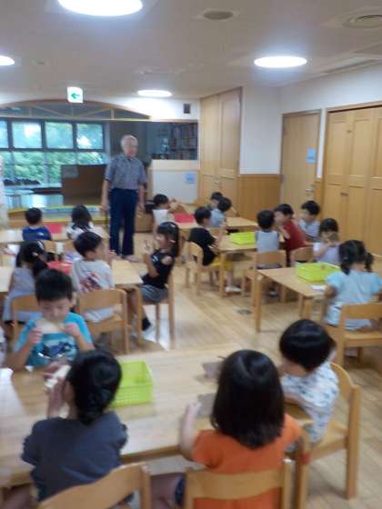先日,5歳児対象に中学校の先生方が「おもしろサイエンス」をしてくださいました