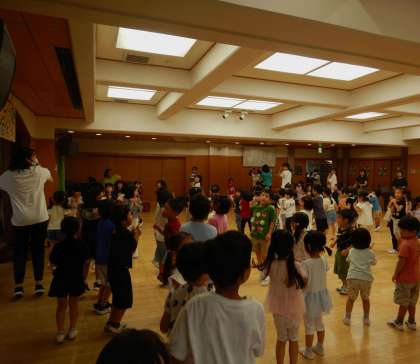 9月生まれの誕生会がありました。今日のお楽しみは、体操です!元気なリズミカルな音楽でいつもノリノリで踊っている一曲です。保護者の皆さんにお披露目できる日は、来月の運動会になりますので、どうぞお楽しみに〜!!