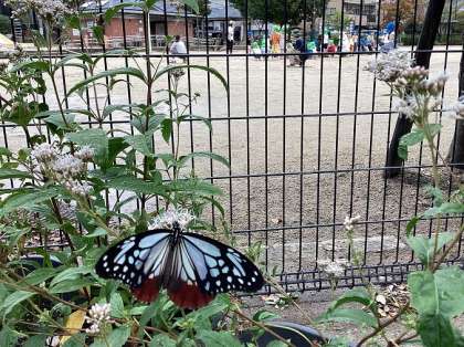地域の方にお世話になって、竹間公園で育てていたフジバカマに待ちに待ったアサギマダラの蝶が来てくれました!優雅に舞うアサギマダラをみてみんな大興奮!!子どもたちは「きれい!」「大きい!」「こんな蝶は初めて見た!」と口々に話していました。フジバカマの蜜が余程お気に入りなのか長く滞在してくれて、みんなのリレーも応援してくれているようでした また会えるかな?