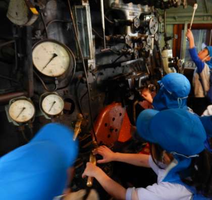 博物館では、迫力のある展示車両やジオラマを見たり、スチーム号に乗ったり、みんなでおにぎりを食べたりして、大喜びの子ども達でした。