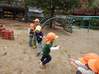 今日は園庭に植えていたさつまいもを4歳児で掘りました。
