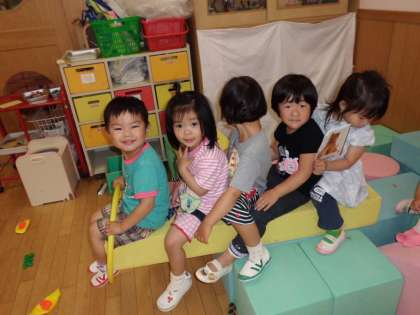 その他にも,粘土あそびやお絵描き,探検ごっこ(4歳,5歳の部屋にあるおばけのおうちにいくのが大好き♪)をしたり・・・雨の日でも,楽しい遊びがいっぱいです!