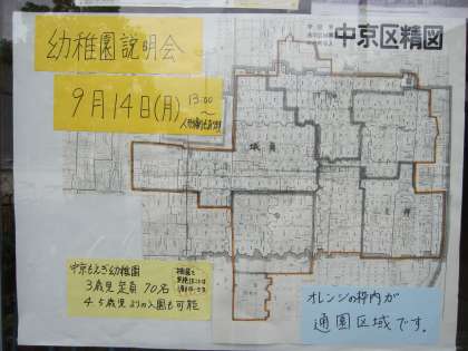 いろいろなご質問にお答えしています。多いのが通園区域についてです。ご覧になりにくいかもしれませんが、写真でお知らせします。詳細につきましてはどうぞおたずねください。メールやお電話でも可能です。9月14日午後1時より、幼稚園説明会です。お待ちしています。