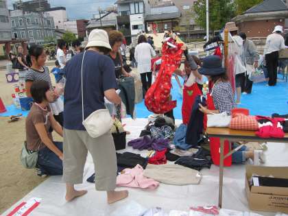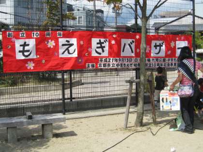 9月13日(日)好天に恵まれ、創立10周年記念バザーが開催されました。8時からのテント張り、ブースの準備を経て、10時からの京都御池中学生のブラスバンドがスタートする頃には竹間公園には大勢の皆さんが集まってくださいました。10時30分からの店開きでは、1634点寄贈いただきましたコーナーには、レジに並ぶ長い列ができていました。沢山の皆様のご協力があってこそと感激しました。ありがとうございました。