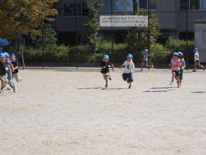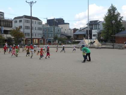 幼稚園の園庭で遊んだり、広い竹間公園でかけっこをしたりしましょう。