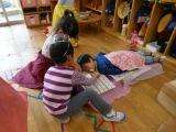 保育室の電気を消して寝やすいようにしたり、薬を飲ませたり、ご飯をつくったりして、手厚い看護のお医者さんです。きっと自分が病気の時に優しくしてもらったことが嬉しかったのでしょうね。