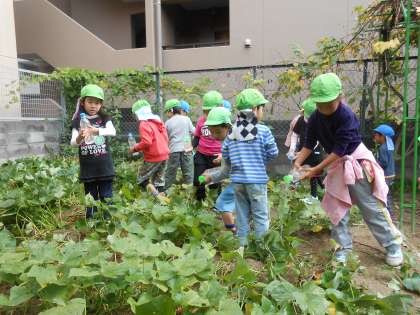 お芋畑の雑草を抜いたり、水をやったりしました。