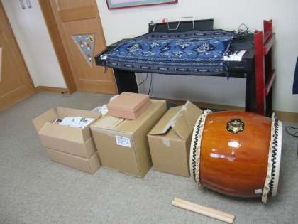いよいよ明日は運動会です。玄関入り口に近い園長室には、準備物の一部が運び込まれています。放送機材や当日の賞品などです。ドアの三角ガラス窓を覗いていた3歳児が、「園長先生ピアノひくの?」と声をかけてきました。「運動会やしね」というと傍の4歳児が「用意やなあ」と助け舟を出してくれました。「ふーん用意か」と納得して3歳児は保育室に戻っていきました。雨降りで外の準備ができません。園長室はまだまだ運動会になりそうにありません。早く天気になあれ!