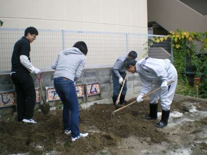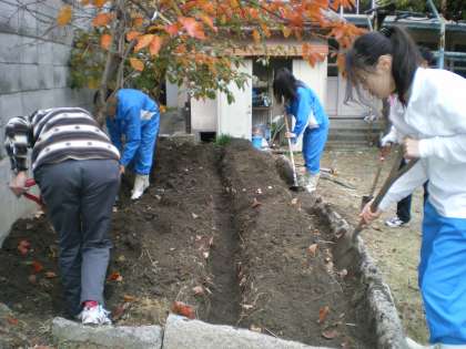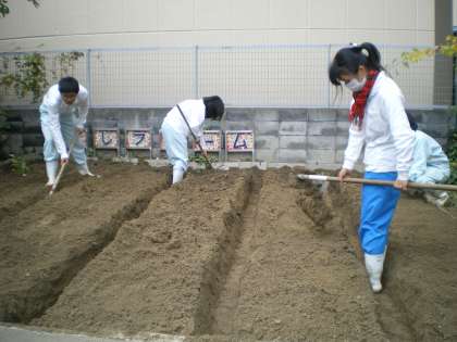 おやじの会の皆様だけでなく,お世話になっている桂高校の学生さんたちも手伝いに来てくださいました。さすが,農業のことについて勉強されているので,畑の土を触って「柔らかい土やね」とか,畝を作るのにも「メジャーはありますか?」など専門的に見て,考えてやってくださいました。とっても丁寧に大事に一畝ずつ作っていかれるので,みていて参考になりました。上の畑に6畝,下の畑に2畝+アルファーの畝ができました。