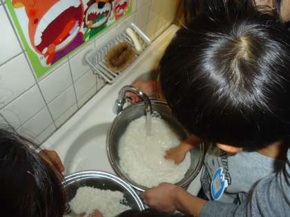 「おもちって最初はこんなお米なんやぁ」「洗ったらこんなに水が白くなった!」といろいろな発見や驚きがありました。
