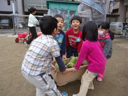 その後は,園庭を広く片付けておくために,3歳児の植木鉢やプランターを移動しました。「水が冷たい〜!」「プランター重い〜!」と言いながらも,明日を楽しみにしているみんなのために,と思い行動できるのは,やっぱり5歳児だな,と感じます。