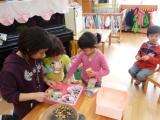 「お腹の中に鬼はいないかなあ」と話をしながら、泣き虫鬼やおこりんぼ鬼など自分で考えながら、豆を食べて、お腹の中の鬼退治をしました。
