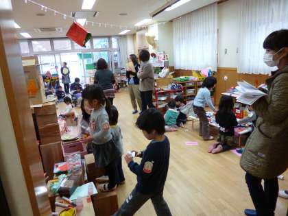 報告会の週はインフルエンザ感染拡大防止のため、年長児1クラスが学級閉鎖を行っているときでした。そのため、急遽、公開保育の学級を変更する事態もありましたが、無事に終えることができました。