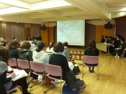 1月30日、研究報告会(研究主題「学びや発達の連続性を見据えた、幼児期の遊びを見直す〜いろいろな人やものとつながり、いきいきと遊ぶための教師の援助や環境構成について考える〜)を行いました。