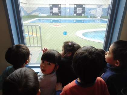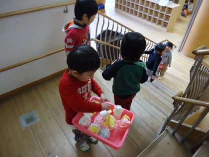 それから,子どもたちはドアの前や階段に自分たちでつくったアイスを