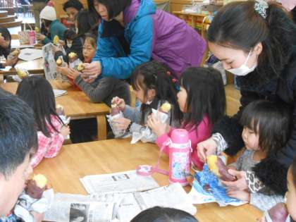 むっくりと柔らかく、あつあつの焼き芋を親子でいただきました。