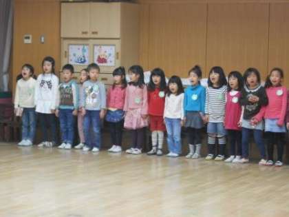 もうすぐ修了式を迎える年長組さんともお別れの日が近くなってきました。年長組さんは皆で♪一年生になったら の歌を聞かせてくれました。『いちねんせいになったら ともだち100にん できるかな?』と期待と夢を体にいっぱい詰め込んで素敵な歌声を響かせていました。そして,年少・年中組の子どもたちは4月からは,いよいよ一つ上の学年に進級をします。一日一日を大切に過ごしていきながら,自信をつけて進学・進級をしてほしいなと願っています!