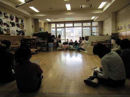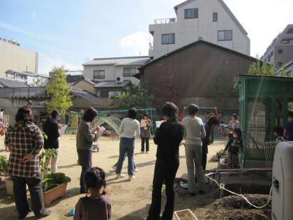 京都市立幼稚園の教員研修会がありました。公開保育と研究協議会です。市内各園の教員に午後からの子ども達のあそびの様子を参観していただきました。研究協議会では、教育委員会の首席指導主事から指導をうけました。教員は様々な研修会に参加し資質の向上を図っています。今日の研修会も今後の指導に役立てて行きたいと思っています。よろしゅうおたのもうします。
