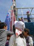 子ども達とこいのぼりのダンスを楽しんだ後,外にあげに行きました。