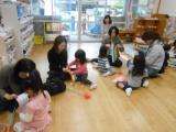 親子の触れあい遊びも楽しみ,頭にくっついたり,ほっぺにくっついたり,膝にのせてもらったりしながら沢山あそびました。