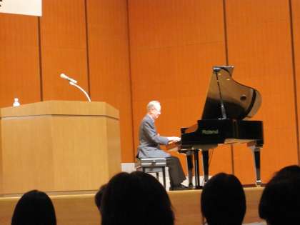 10月30日(金)第51回平成21年度近畿音楽教育研究会京都大会がありました。6年ぶりの京都開催です。幼稚園・小学校・中学校・高校・総合支援学校が研究発表を行いました。午前中の公開保育は京都市立伏見南浜幼稚園でありました。大勢の参観者の中、子ども達が楽しくのびのびと活動していました。園長室前に「おとのへや」の札がかかっていました。覗いてみるとオルゴールが置かれていました。良い耳を育てるための環境づくりがされていることに感心しました。午後の京都会館での研究演奏では、明徳・伏見板橋・伏見住吉・竹田の京都市立幼稚園5歳児116名がうたを歌いました。かわいい元気な歌声でした。お兄さんお姉さん達にひけをとらない堂々とした発表でした。最後は作曲家服部克久氏の「曲が出来上がるまで」の講演でした。東京音大教授としての専門的なお話からピアノ演奏を交えて体験談もたくさん話していただき瞬く間に1時間が過ぎました。自身の音楽性の貧しさを恥ながら、少しでも感性豊かな教師をめざしたいと研修に参加させていただいた1日でした。多くの若い先生方の参加もあり、学ぶ姿勢の大切さを改めて思いました。ありがとうございました。