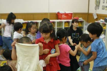 また年少組には「年長さんに手伝ってもらってうれしかった,よかった・・・」という気持ちがもてていると思います。3歳児にとっても5歳児にとっても,心を育てる大きな経験だと思います。遊びや生活の中で,異年齢の交流もこれからどんどん広がっていくと思います。そんな気持ちが積み重ねられるような日々を大切にしていきたいと思っています。
