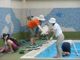毎日蒸し暑い日が続いていますね。もえぎ幼稚園では、来週の木曜日(20日)にプール開きを予定しています。今日はPTA役員とクラス委員のお母様方によるプール清掃が行なわれました。プール遊びを楽しみにしている子どもたちは、屋上プールの様子が気になって仕方がないようで、何度ものぞきに行っていました。子どもたちの「お母さん頑張って」の声援や「(綺麗にしてくれて)ありがとう」の声が気持ちよく響いていました。