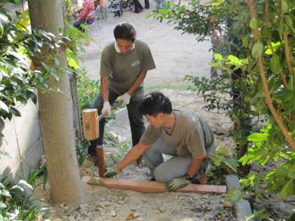 11月8日(日)元明倫幼稚園の築山部分の工事をさせていただきました。10時から14時30分ぐらいまでかかりました。お陰さまで子ども達も遊びやすくなることと嬉しく思っています。11名の参加があり、ご近所不動町の皆様の応援も得て、無事一段落です。一朝一夕には一面豊かな緑にとはなりませんが、大切に育ませていただきたいと思っています。ありがとうございました。今後ともどうぞよろしゅうおたのもうします。