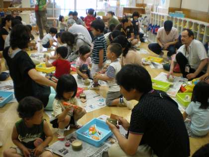 お家の方の中には,初めて幼稚園に来てくださった方もいらっしゃったかもしれませんでしたね。子どもたちもお家の方と一緒につくることができて嬉しそう,楽しそうでした。