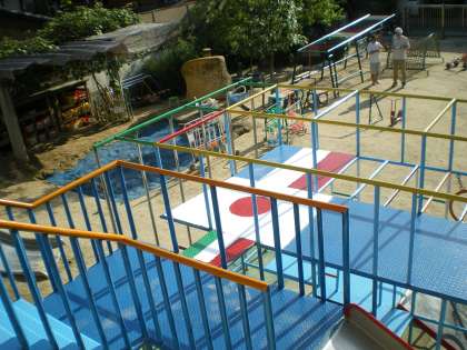 * ジャングルジムの上が,とてもカラフルに楽しく,国際的(?)になりました。皆様ご覧ください・・・