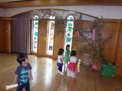 今日も大好きなおばけ探検に出掛け,遊戯室に入ると・・・「あ!たなばたさま!」