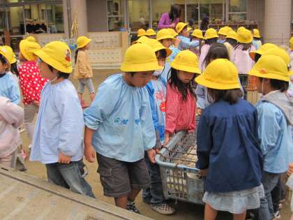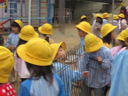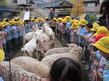動物達と遊んだあとの片付けを5歳児が手伝いました。ウサギがたくさん一緒に入ったケースを運んだり、ゲージを分解したり、最後はみんなで考えて柵を持ち上げてヤギやヒツジたちを囲い込んでトラックに入れました。「来年はもう会えないなあ」としみじみトラックを見送る年長児の姿がありました。年少の時、年中の時、年長の時、それぞれの自分の姿を思い出しているのでしょうか?毎年移動動物園が来てくれることで子どもは自分の成長を省みる機会になっているのだなあと思いました。Aちゃんはきっと先生にすがりついていた年少の時のことを思い出していたのかも知れませんね。ありがとうございました。