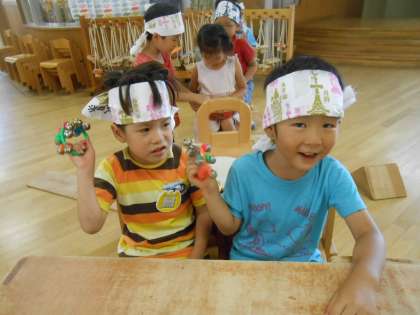 7月1日のこと。4歳児のある子が,「祇園祭したいな〜」とぽつりとつぶやきました。1日はまさに祇園祭が始まる日。さすが地域の子だなぁ〜と感心しました。