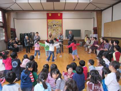 元明倫幼稚園へ年長児が芋掘りに行きました。明倫学区の敬老会、明寿会さんとの交流をさせていただきました。遊戯室では、うたをうたったり、焼き芋グーチーパーをしたりしました。温かく大切にされていると感じた子ども達は嬉しくてはじけていました。血のつながりはなくても、人として老若しっかりつながっていることを嬉しく思いました。何度も子ども達のじゃんけんの相手をしてくださりありがとうございました。