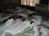 夜にはキャンプファイヤーを楽しみ,めいいっぱい遊んだ子どもたちはすやすや眠りました。