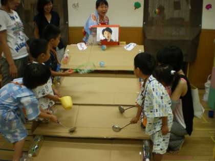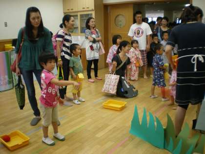 思い切りよく輪の中に飛び込んでいく人もいました。ちょっぴり怖い人は,お家の人に手をもってもらっていましたが,きっと面白かったと思ったことでしょうね。