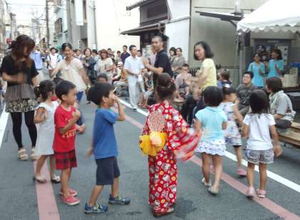 踊り終わる頃には,行灯に灯りが入っていました。子どもたちのかいた絵が灯りに灯しだされて素敵でした。ご参加いただいた皆様有難うございました。