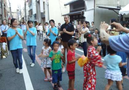 5時30分,京都御池中学校の吹奏楽部のマーチングがあったり,演奏があったりしました。そしてその後,もえぎ幼稚園の子どもたちの順番でした。