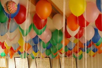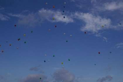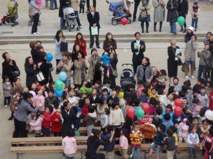 メッセージをつけた風船を飛ばしました。朝からおやじの会の皆さんが、200個の風船を準備してくださいました。青空の中、序幕のカウントダウンで一斉に放たれました。好天に恵まれ東の空へ上がっていきました。どこまで行くでしょう。どなたかきっと拾ってくださいね。お便りお待ちしています。