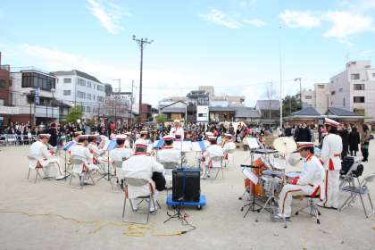 最後に消防音楽隊の演奏を聴きました。幼稚園の歌「みんながいいね」や「アンパンマン」「崖の上のポニョ」等の演奏の時には子ども達の歌声も一緒でした。良い子の防火の話もしていただき15分が瞬く間に済みました。降園時には記念事業実行委員会から記念品の園歌の聞けるオルゴールとお祝いの饅頭をいただき、それらを入れた封筒を大事に持って帰りました。本当にありがとうございました。これからもどうぞよろしゅうおたのもうします。