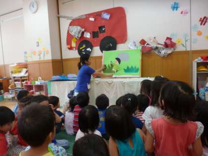 帰りには学年で探検ごっこのお話を見ました。探検が大好きな子どもたちは,まるでお話の世界に入ったようにとても喜んで見ていました。明日からの遊びにつながる,素敵なお話で,ますますこれからの運動会ごっこが楽しみになってきました。