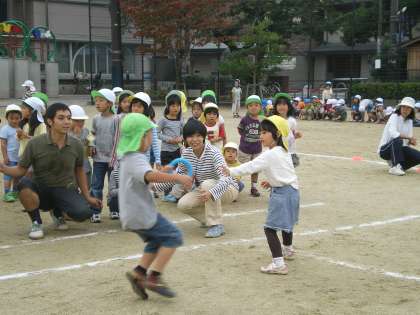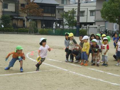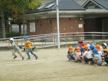 綱引きを楽しんだ後は,4・5歳児がリレーを楽しみました。