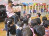 4歳児のたんぽぽ組は「かちかちやま」ひまわり組は「わらしべちょうじゃ」。子どもたちは昔話特有の言い回しや言葉,お話を楽しんできいていました。