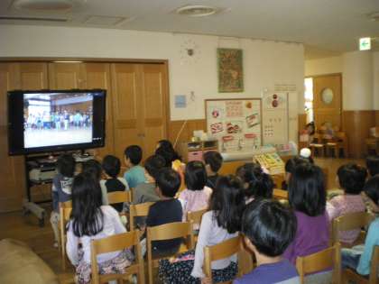またビデオ上映を楽しみました。自分たちがしていることをビデオでみることで,よりわかったり,もっとこんな風にできるかなと気づいたりしている姿もありました。