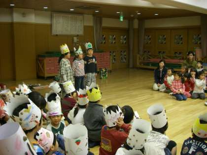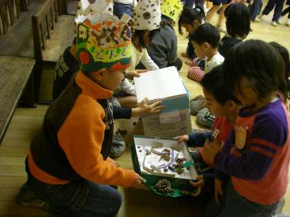 この交流は3回の予定で、今日は年中児、昨日と来週は年長児が、預り保育の時間帯に参加しています。