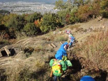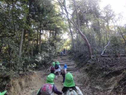 帰り道,下ってきた大文字山を振り返りながら,「あそこが大や」と指さして,高い山に登ってきたことを実感していた子どもたちでした。
