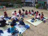 お昼はお天気が良くて綺麗な青空のもと,園庭でお弁当を食べました。