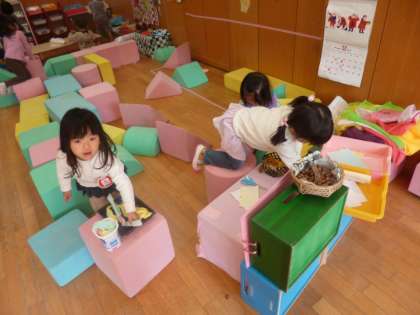 お兄ちゃんお姉ちゃんとの遊びの中で,異年齢のかかわり楽しんだり,刺激をもらって自分たちの遊びがより楽しくふくらんだりします。そのような経験を大切にしたいと思っています。
