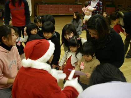 12月21日(月)今年最後の未就園児教育相談親子登園日でした。絵本を見たり音楽にあわせて鈴を鳴らしたり、そして最後はお姉さんサンタの登場です。長靴のプレゼントをもらって大喜びでした。来年は1月18日(月)からです。楽しい冬休みを過ごしてくださいね。